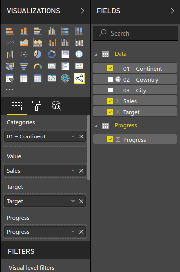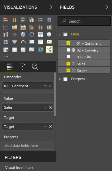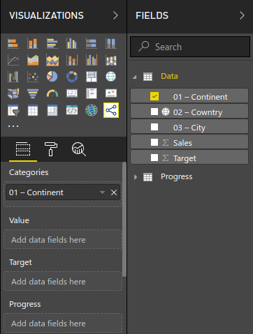 This field is optional. In this field you can put one measure of your model. It will be the progress of each node in the visual. It must contains a value between 0 and 1.