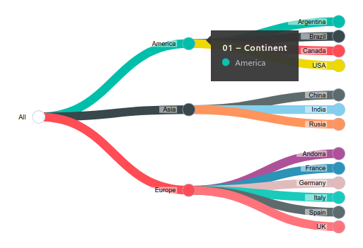 When you select one or more attributes for Categories field, and a measure into Value field. The pies of the tree shows the percent of the node value over parent value.